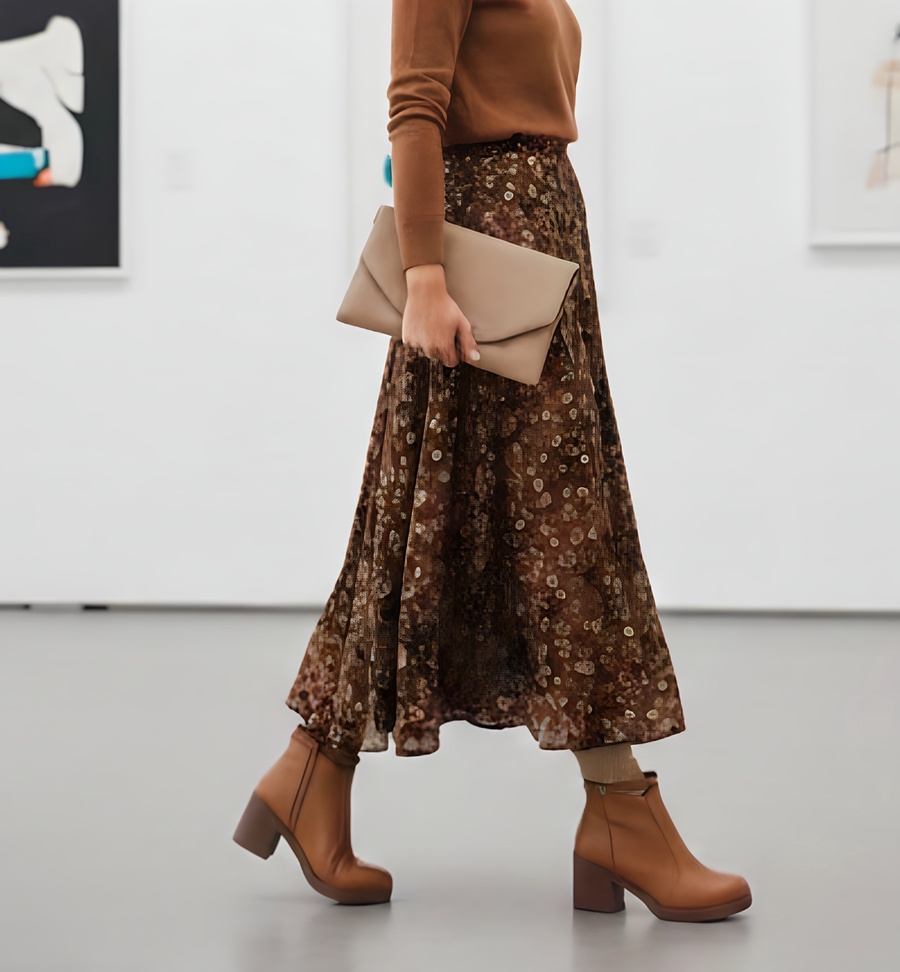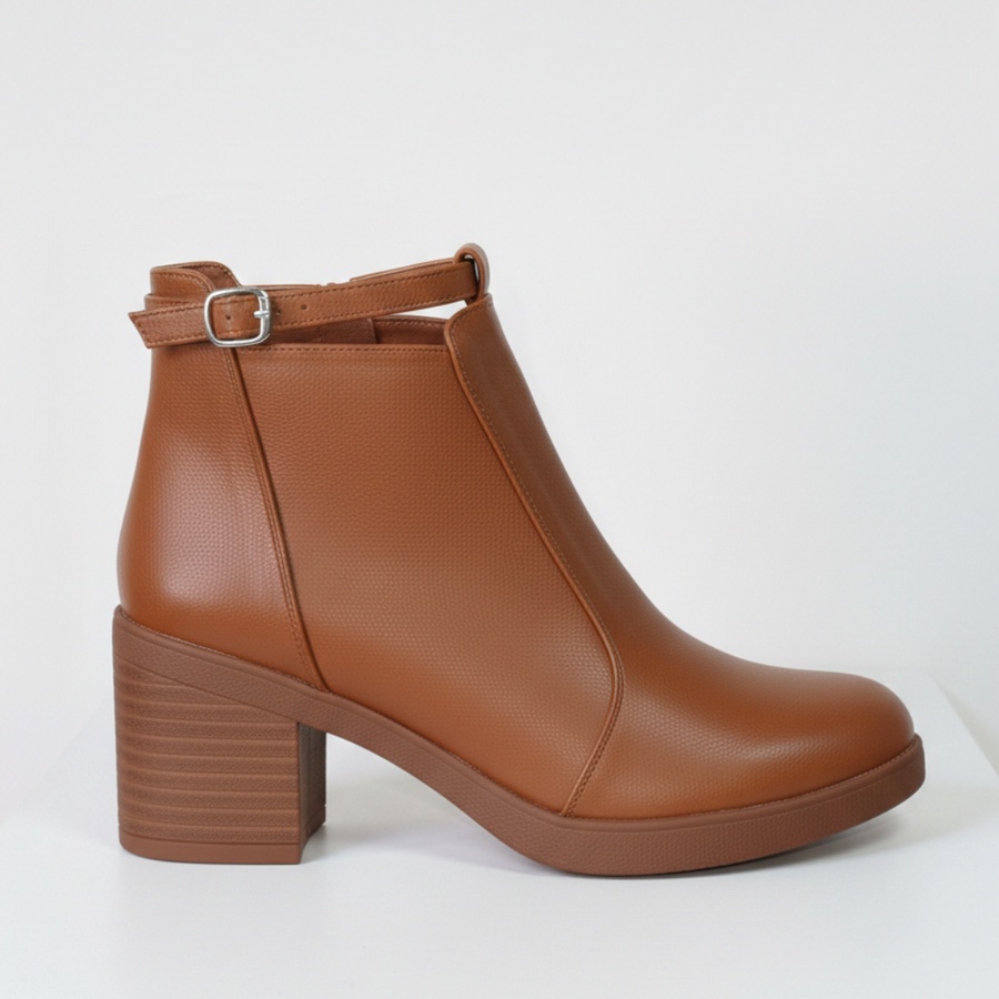 هاف بوت أنيق ومريح بكعب عريض وإبزيم جانبي، مثالي للخروجات والمناسبات في رمضان. متاح بألوان (هافان).